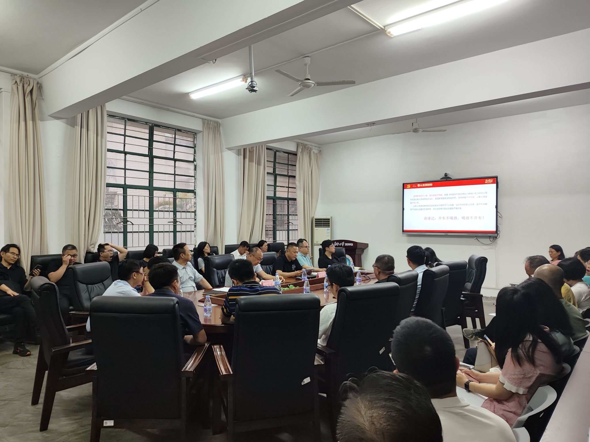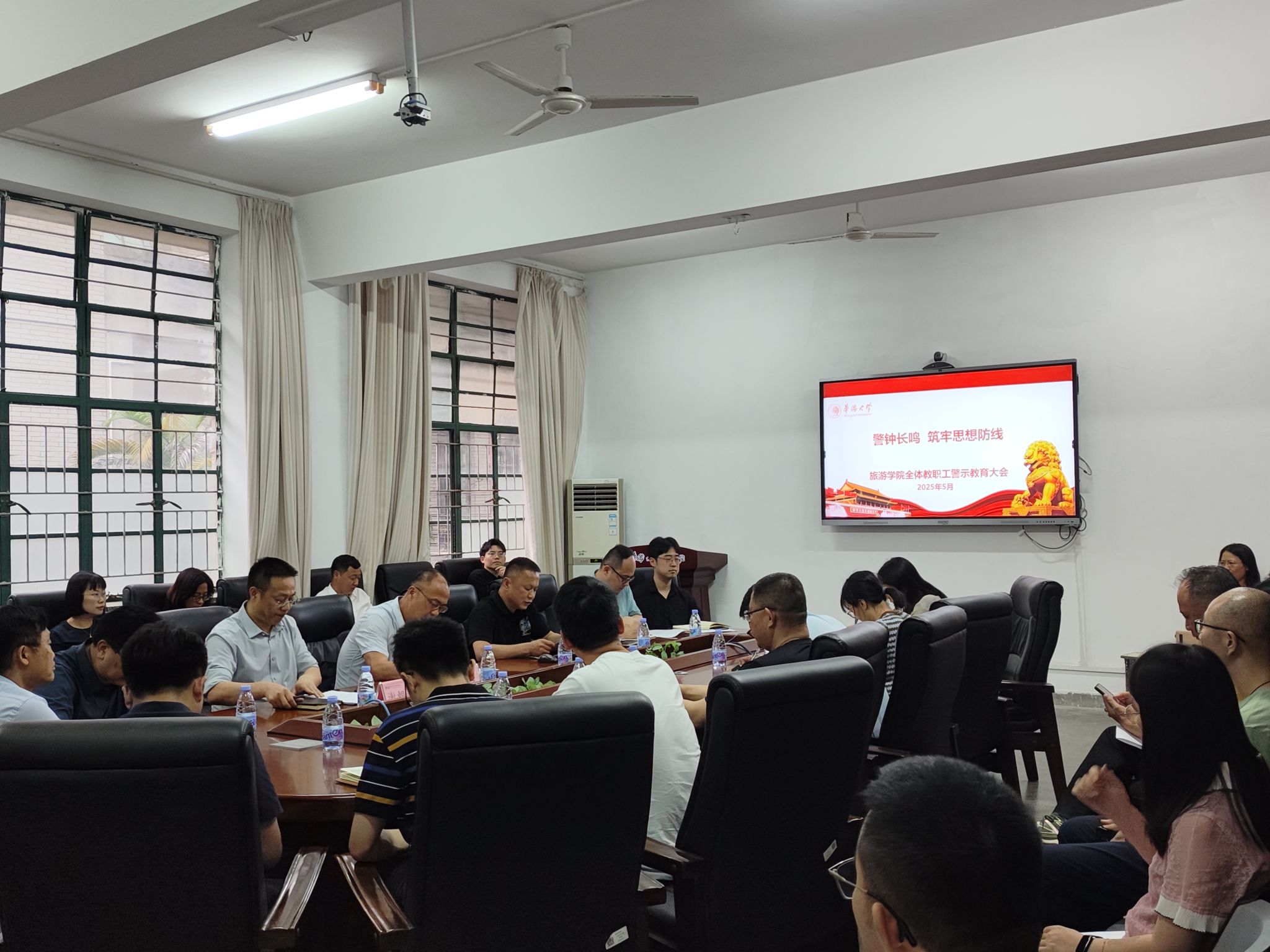 会上,院长谢朝武同志首先通报了党的十九大以来学校违纪违法案件的查处情况,并结合学院排查的主要风险隐患进行剖析。他要求全体教职工要以典型案例为警示,强化法纪意识和规矩意识。